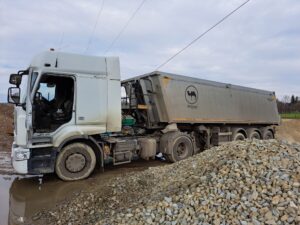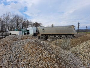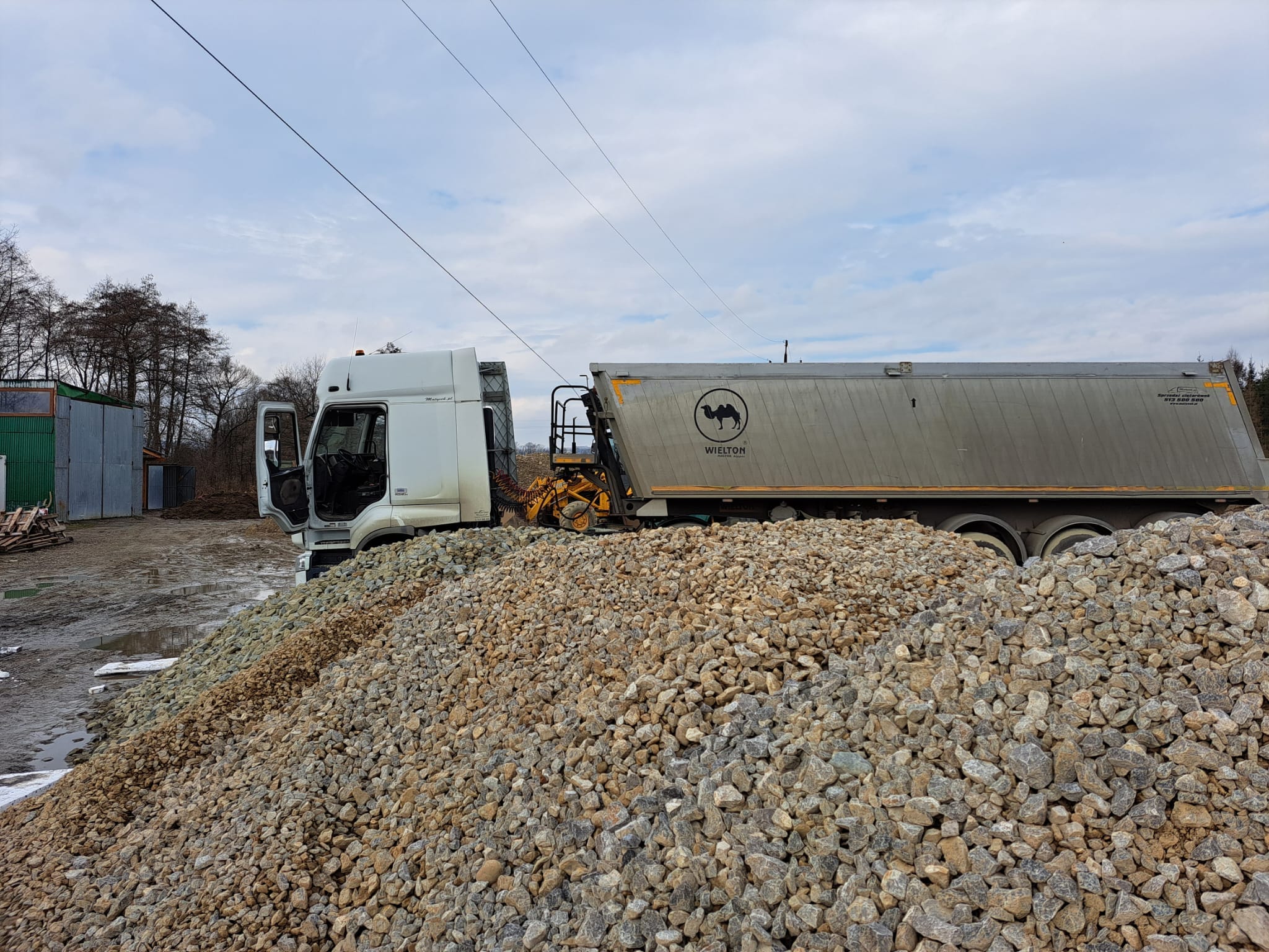 Dzisiejszego poranka przed godziną dziewiątą do Zabłędzy przyjechał kierowca zestawu ciężarowego, który przywiózł kruszywo. Po jego rozładunku na składzie, kierowca zaczął opuszczać wywrotkę, która niestety zahaczyła o wiszące przewody średniego napięcia.