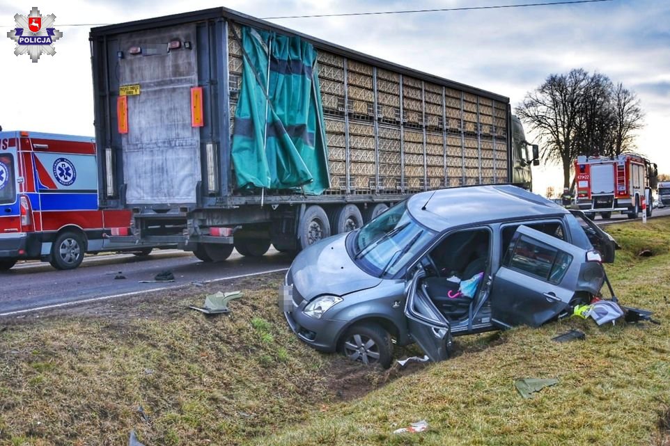 Pracujący na miejscu wypadku policjanci z łukowskiej drogówki ustalili, że kierująca samochodem suzuki zderzyła się z samochodem ciężarowym marki Volvo, którym kierował 55-letni mieszkaniec Lublina. Ze wstępnych ustaleń mundurowych wynika, że bezpośrednio przed wypadkiem kierująca suzuki 35-latka wyprzedzała inne pojazdy i chcąc uniknąć zderzenia z jadącym z przeciwka ciężarowym volvo zjechała gwałtownie na prawą stronę. Wówczas jej samochód „wpadł w poślizg” i niestety uderzył w ciężarówkę, a następnie wpadł do przydrożnego rowu.