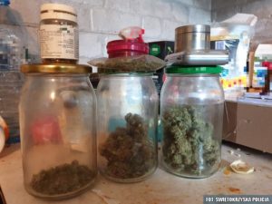 A mundurowi bardzo skrupulatnie sprawdzili każdy zakamarek i z minuty na minutę sytuacja z punktu widzenia 35- latka była coraz gorsza. Funkcjonariusze znaleźli „ziołowe przetwory” umieszczone w słoikach. Następnie natrafili na worek, wypełniony suszem roślinnym i pozostałościami po uprawach. Policjanci wiedzieli, że trzeba szukać dalej i odkryli aparaturę, a w niej już rosnące zabronione rośliny. Kielczanin w kajdankach opuścił dom razem z policjantami, którzy dodatkowo zabezpieczyli ponad 12 000 złotych w gotówce na poczet przyszłej kary.