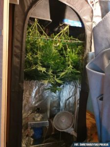 Łącznie zostały zabezpieczone 32 rośliny w różnej fazie wzrostu oraz około 1100 gramów suszu, który trafił do laboratoryjnych badań. 35- latek usłyszał już zarzut nielegalnej uprawy narkotyków oraz wytwarzania znacznej ilości narkotyków, za co mogą mu grozić minimum 3 lata więzienia.